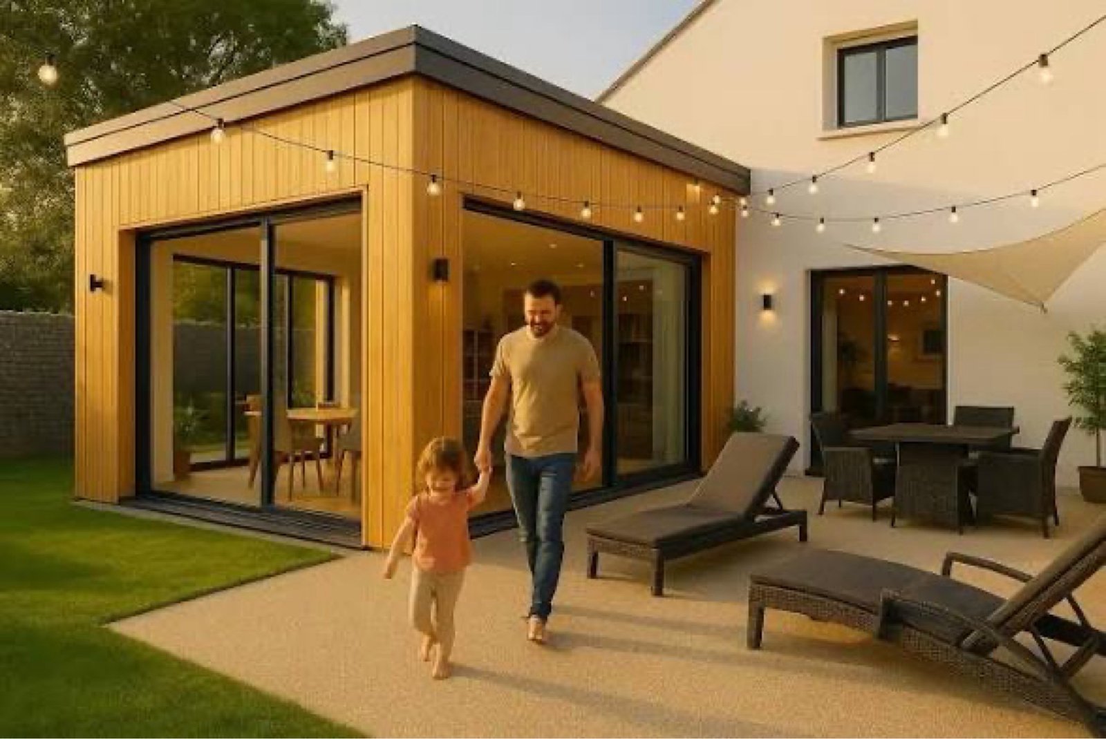 Selon vos objectifs, nous pouvons proposer différentes options constructives et esthétiques : extension ossature bois pour un chantier léger et rapide, structure maçonnée pour une intégration pérenne, ou module préfabriqué pour réduire les nuisances. Les menuiseries performantes et les grandes baies vitrées assurent confort thermique et luminosité ; les terrasses et dallages viennent compléter l’aménagement extérieur pour créer des espaces de détente ou de réception. En tant que maître d’œuvre et architecte résidentiel, nous pilotons les études, concevons les plans d’architecte, accompagnons les démarches administratives (permis de construire ou déclaration préalable selon le projet) et coordonnons les artisans pour garantir un chantier propre et maîtrisé, en concertation avec vous.