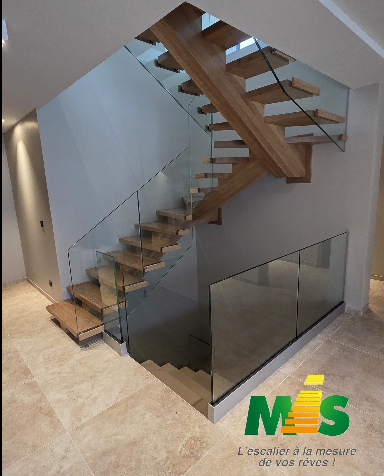 – Solution sur-mesure adaptée à votre espace – Esthétique contemporaine : bois clair et verre pour plus de lumière – Sécurité et conformité des garde-corps via verre trempé/feuilleté – Intervention propre et respectueuse du chantier – Devis clair et suivi personnalisé – Optimisation de l’espace sous-escalier pour rangement ou aménagement