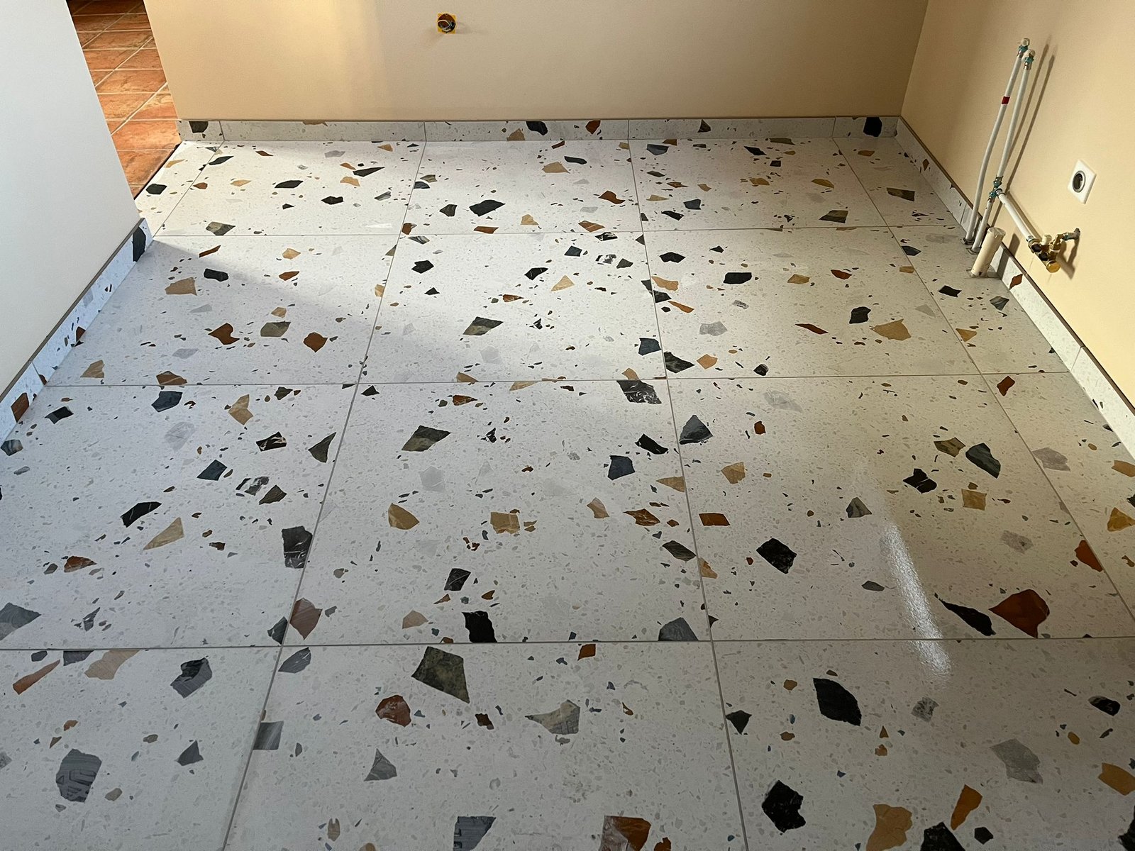 Nous travaillons avec des matériaux courants tels que carrelage grand format, dalles terrazzo, chape ciment, résine d’étanchéité et plinthes assorties, en adaptant les solutions aux contraintes techniques et au style souhaité par le client.