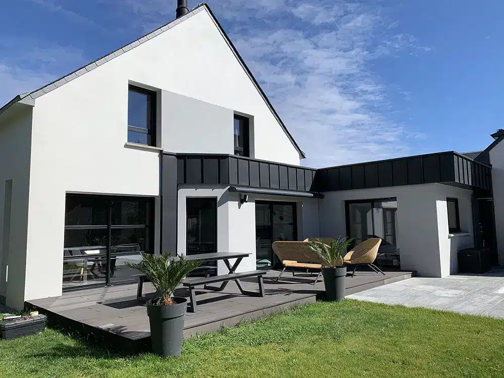 – Meilleure luminosité naturelle grâce à de grandes baies vitrées – Harmonie façade/bardage pour un rendu contemporain et intemporel – Terrasse optimisée pour vie extérieure et convivialité – Coordination de chantier pour limiter les aléas et respecter les délais – Devis clair et proposition d’étapes adaptées à votre budget – Suivi personnalisé du projet par un interlocuteur unique